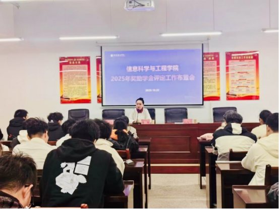 为有序推进2025年奖助学金评定工作,保障学生权益,10月22日中午,信息学院在17503教室召开奖助学金评定工作布置会。学院党委副书记潘昕、各年级辅导员及各班级班长、学习委员、团支书共同参会,会议由24级辅导员王艳芬主持。