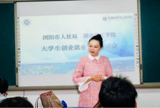 为深入学习贯彻党的二十届四中全会精神,落实党中央关于促进高校毕业生高质量充分就业的重要部署,积极服务湖南“三高四新”战略定位和使命任务,信息科学与工程学院坚持“走出去、请进来”的就业帮促理念,继湘北地区2025届高校毕业生秋季供需见面会后,湖南理工学院信息科学与工程学院举办浏阳市大学生创业就业专题宣讲会,并同步启动经开区专场招聘会。此次活动由浏阳市人力资源和社会保障局副局长李仕飞主讲,浏阳经开区多家重点企业代表到校宣讲招聘。信息学院党委副书记潘昕、学院辅导员代表及百余名学生共同参会,现场气氛热烈、互动频繁。