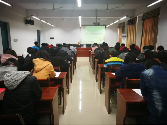 为学习宣传党的十九大会议精神,2017年12月18日下午两点半,信息学院党支部书记张泰来教授于16410为学院第37期近80名入党积极分子作关于“党的十九大精神辅导学习”的党课培训讲座,学院全体辅导员参加,讲座由刘盈盈老师主持。