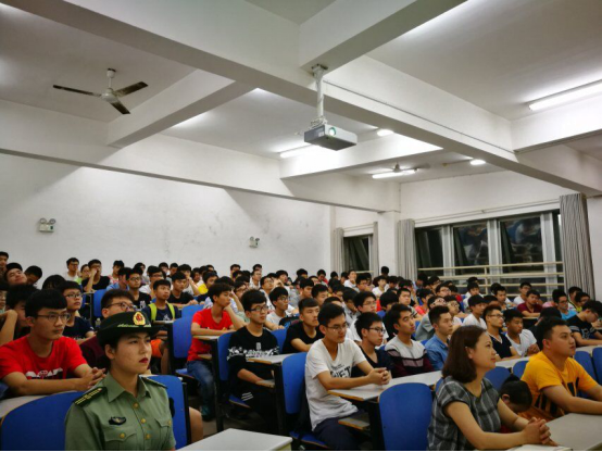 为配合我校征兵宣传工作的顺利开展,2017年6月13日晚7点半,校党委学工部和信息学院在15217联合举办大学生征兵宣传及动员大会,湖南理工学院民兵连受邀进行宣讲。信息学院党总支副书记徐丹、学工办主任张超、湖南理工学院民兵连及信息学院16级部分学生代表出席大会。本次宣讲会由民兵连成员王园晖主持。