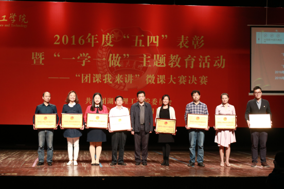 2017年5月4日晚七点,湖南理工学院2016年度五四表彰暨“一学一做”主题教育活动――“团课我来讲”微课大赛决赛于东院演播厅成功开展。出席本次表彰大会的领导有校党委书记李明,校党委委员、副校长徐小立,校党委宣传部部长王庆华、校党委学工部部长徐振祥、校教务处处长瞿述等教师代表,我院党总支副书记徐丹应邀出席大会。