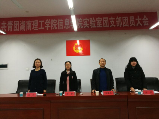 为进一步加强基层团组织建设,提升学生创新实践、研究能力,2017年3月21日下午,共青团湖南理工学院信息学院实验室团支部大会在16410会议室胜利召开。校团委书记薛静应邀出席大会,我院总支书记张泰来、副书记徐丹、实验室指导老师陈松、学工办全体辅导员及62名实验室团员参加了大会。会议由院团总支书记余滔主持。
