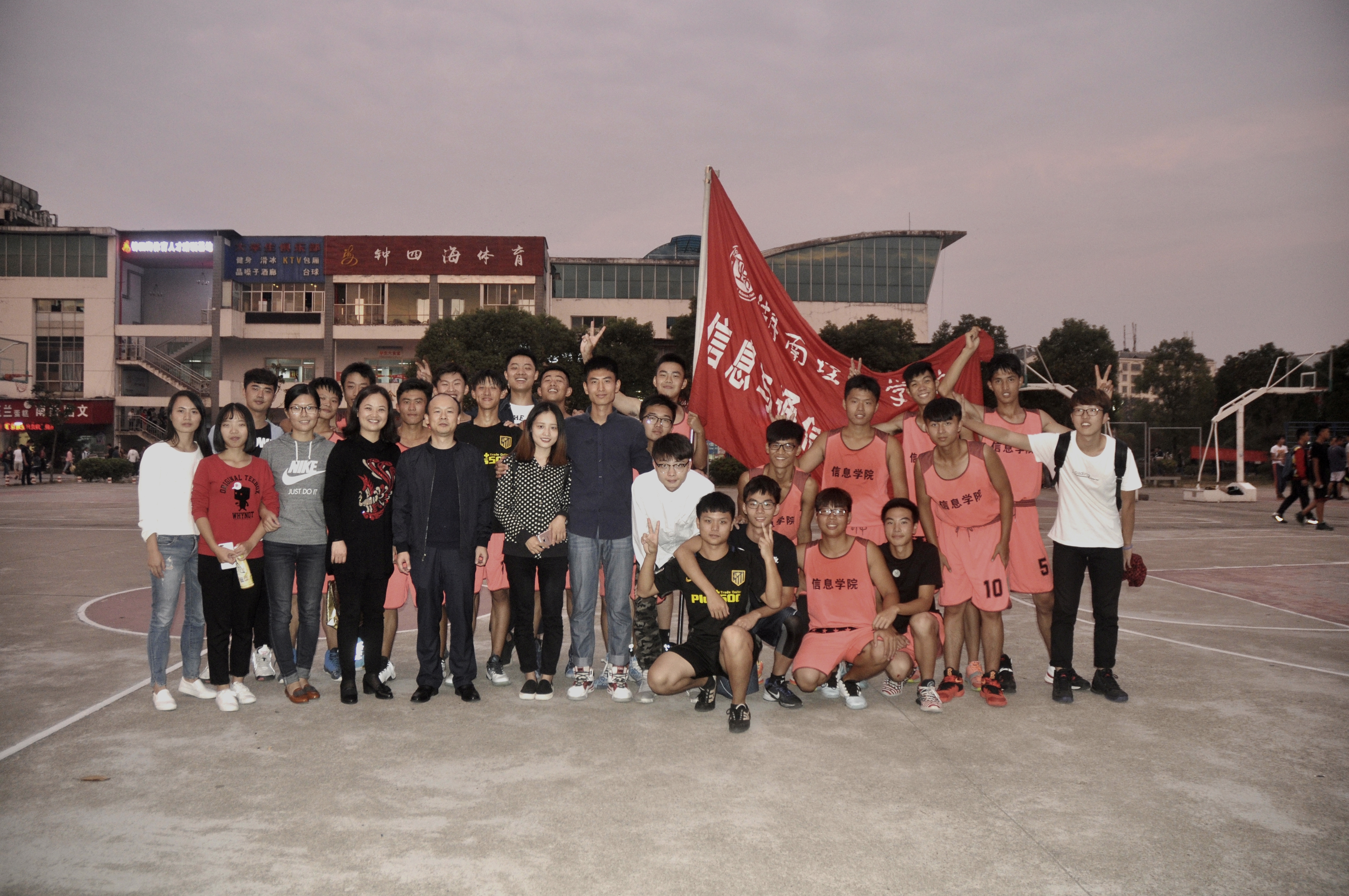 2016年10月18日下午五点,湖南理工学院16级男子篮球“新生杯”总决赛如期在篮球场进行。我院党总支书记张泰来、党总支副书记徐丹、学工办主任张超、16级辅导员周煊阳和辅导员余滔老师来到现场给新生们加油,气氛火热,呐喊连连。