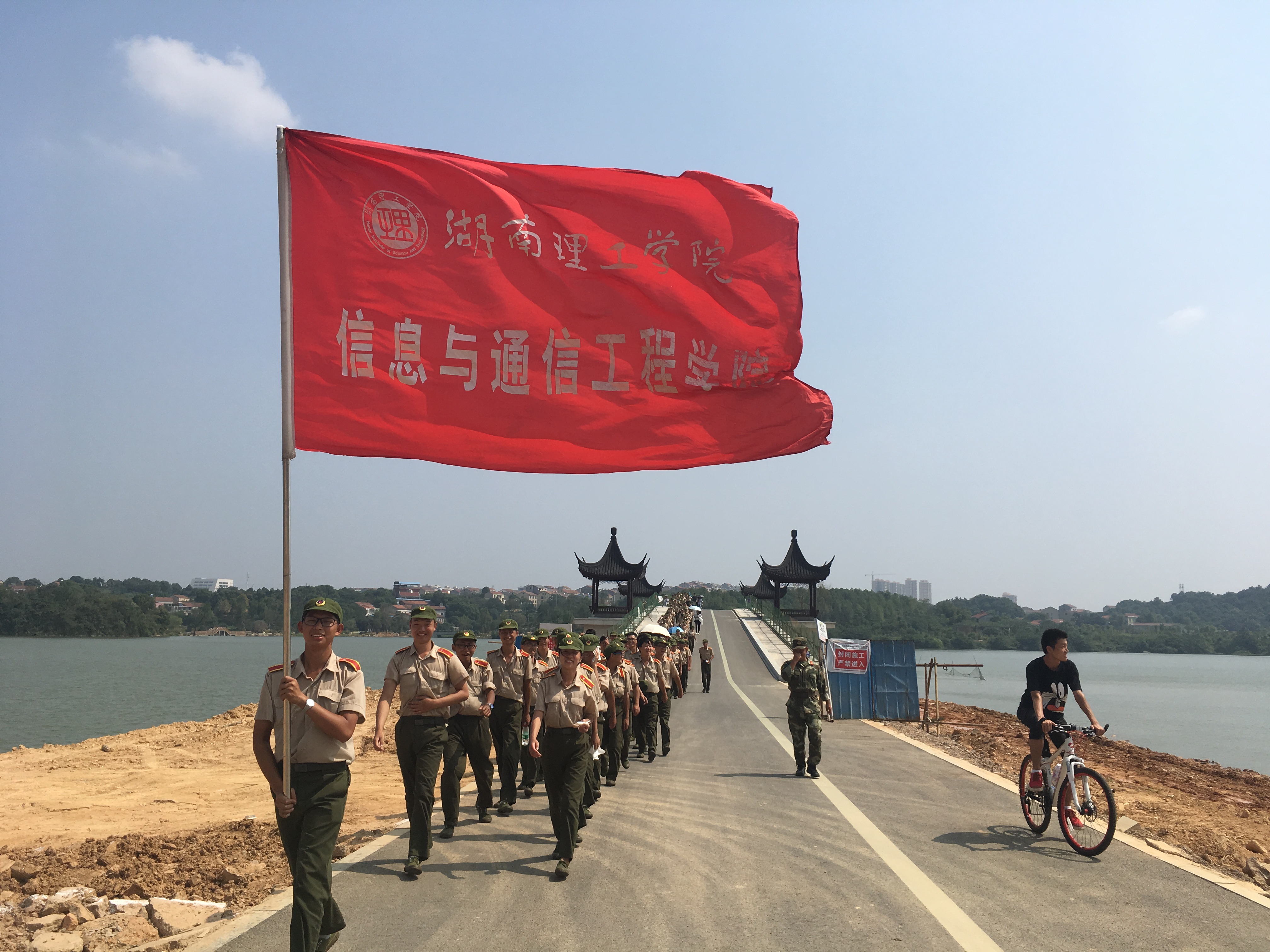 前有红军长征两万里,后有我院学子徒步上靶场。正午时分,烈日当头, 我院学子迈着坚定的步伐,整齐有序地前进着。一首首响彻云霄的军歌,一阵阵互相鼓舞的掌声,信息学子顶着艳阳流着汗,苦中作乐。