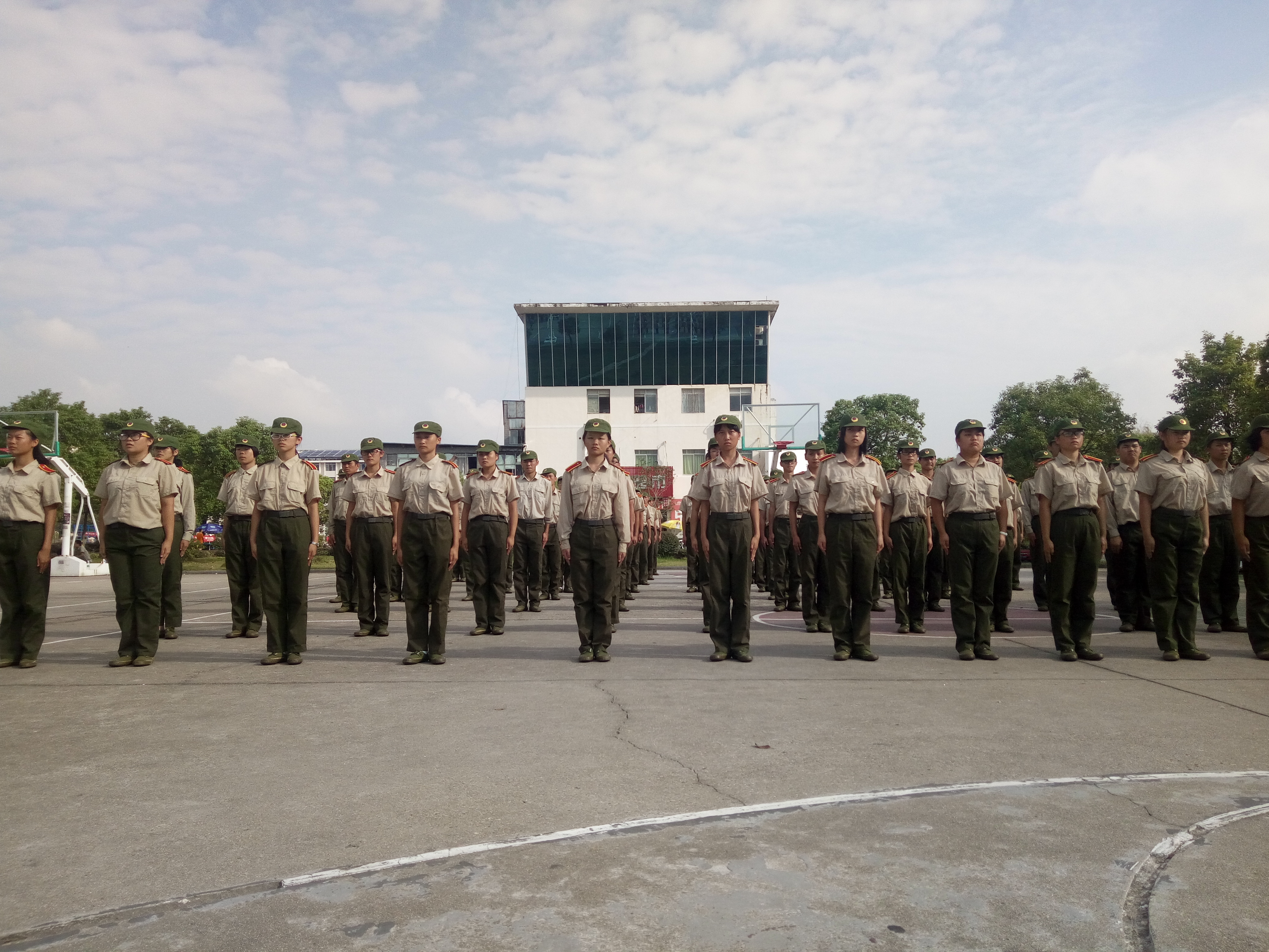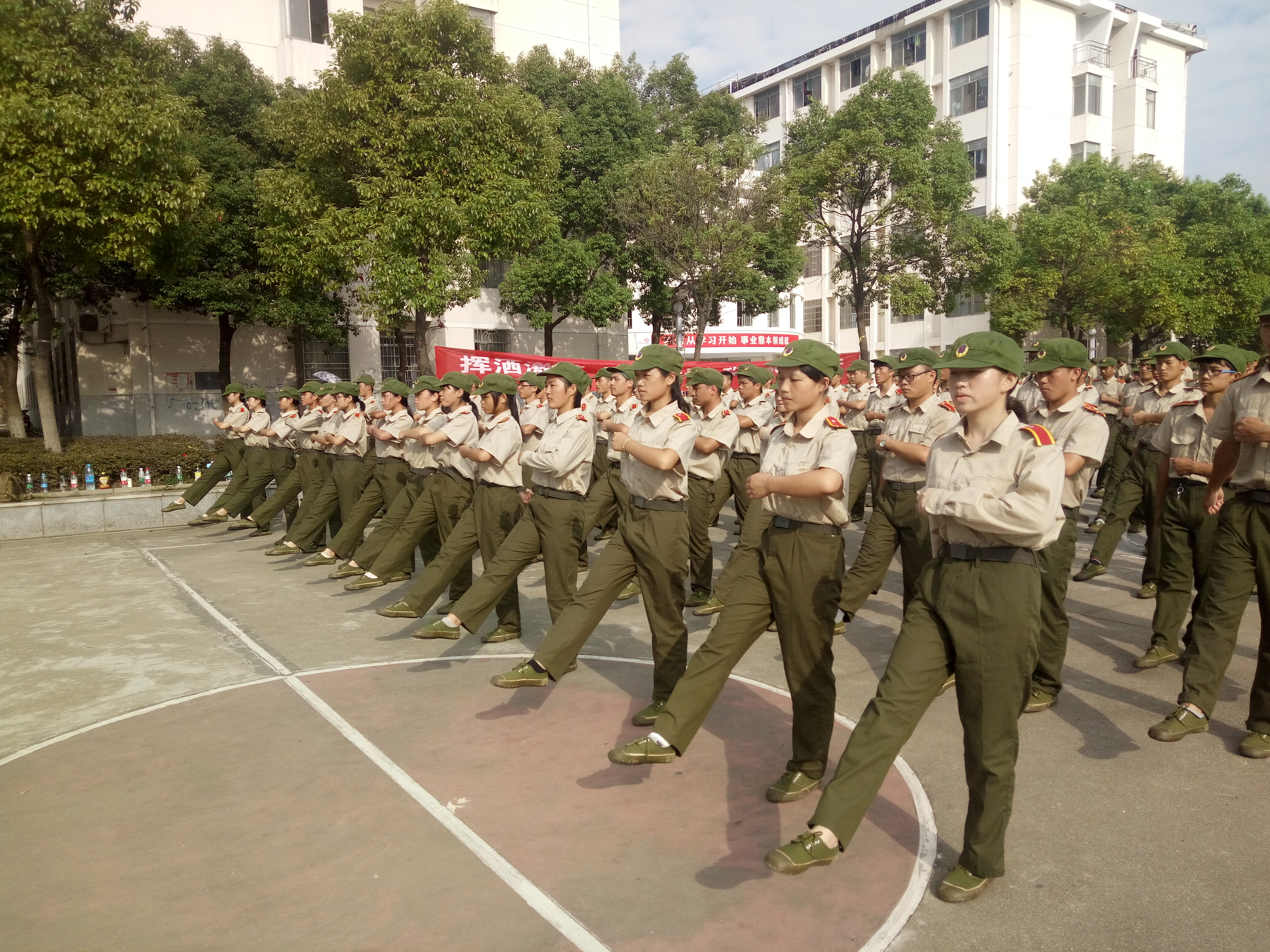 军训第六天,依旧艳阳高照,我院学子正踏着整齐划一的正步在训练场来回操练着。尽管早已汗流浃背,但他们仍旧昂首挺胸,气宇轩扬。