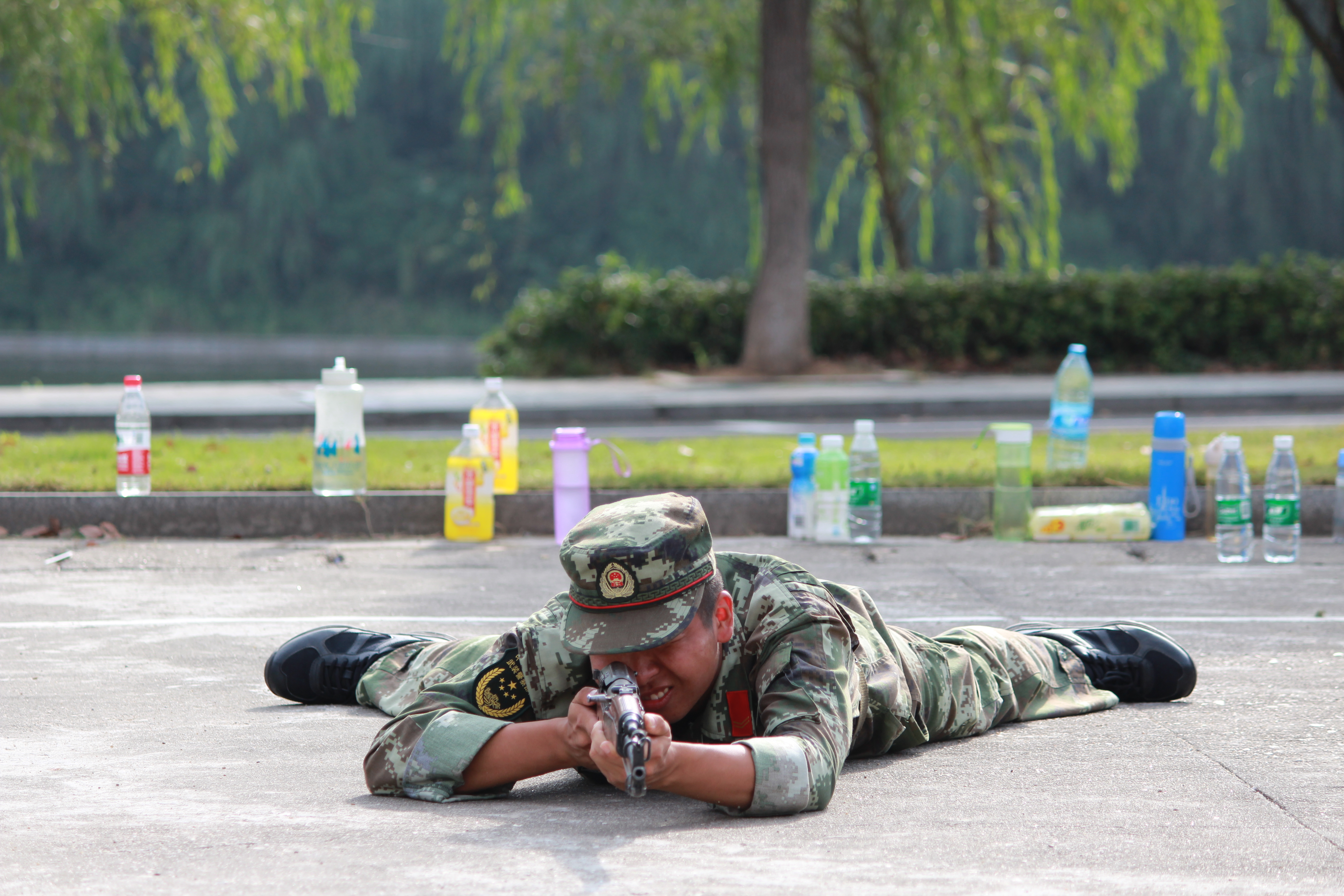 军训打靶即将来临,为提前让大家了解打靶,教官为新生们演示了正确的打靶姿势,并说明了打靶的注意事项。