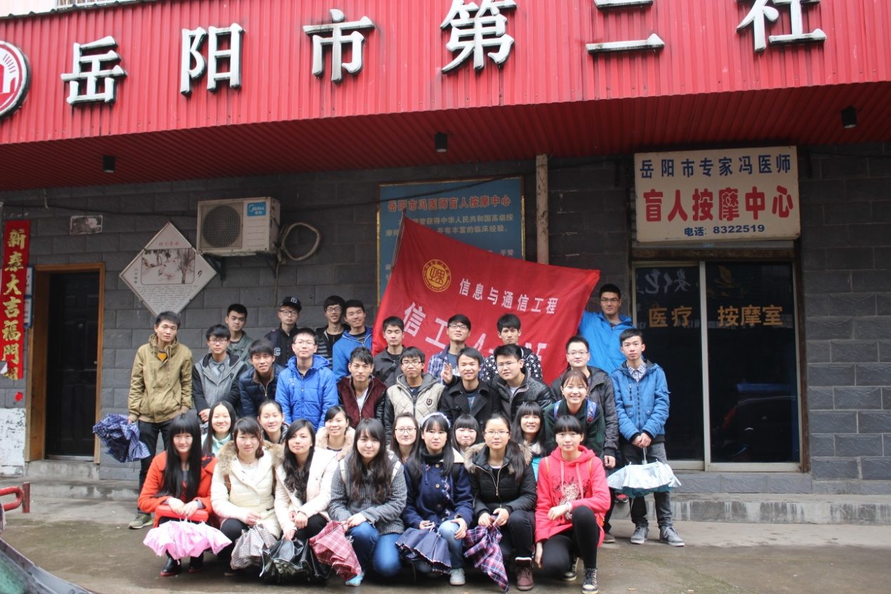 2015年3月14日,信息与通信工程学院14级信工2班全体学生前往岳阳市第二福利医院,看望并帮助孤寡老人。