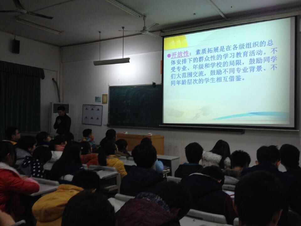 12月19日晚7点,信息学院14级全体学生干部在6T102召开了“信息学院素质拓展推进会”。此次会议由院学生会素质拓展部副部主办。