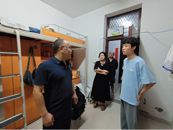 在走访过程中,肖迎群和付亚子亲切的和同学们交谈,询问大家对于新环境的适应情况,关心同学们的生活起居,从住宿条件到饮食,事无巨细,并提醒同学们谨防诈骗,提高警惕,保护好个人财产。