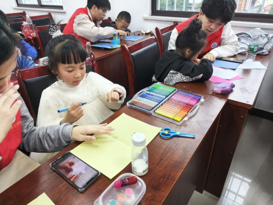 义卖结束后,少年儿童们在志愿者的耐心指导下,用彩纸,贴纸等材料,制作出一张张充满创意的爱心贺卡,每一张贺卡都承载着孩子们对弱势群体的心意和美好祝愿。