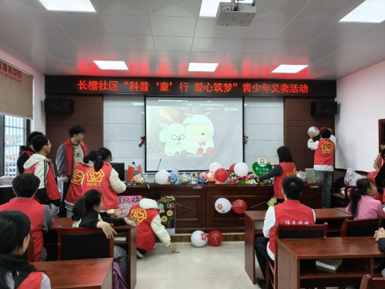 为培养少年儿童乐于助人的品质,体验奉献爱心带来的快乐,在他们心中种下爱心的种子,11月17日下午,信息学院爱雏鸟志愿服务团队联合长檀社区举行了“科普‘童’行,爱心筑梦”青少年义卖活动。