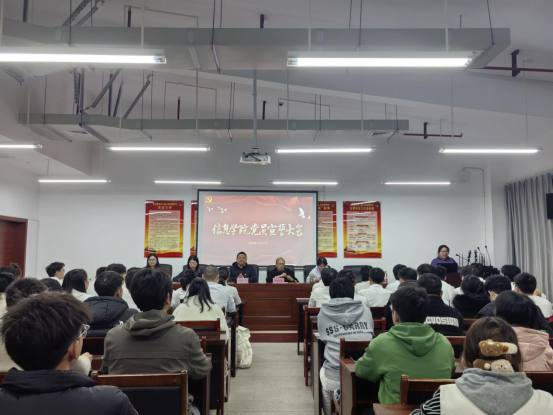11月21日19:00,信息学院于17503召开新党员宣誓大会。党委副书记付亚子、专职组织员刘照馨、学生党支部书记王艳芬、余滔、李亦波、米阳出席。信息学院全体预备党员、正式党员及入党积极分子代表参加,本次会议由余滔主持。