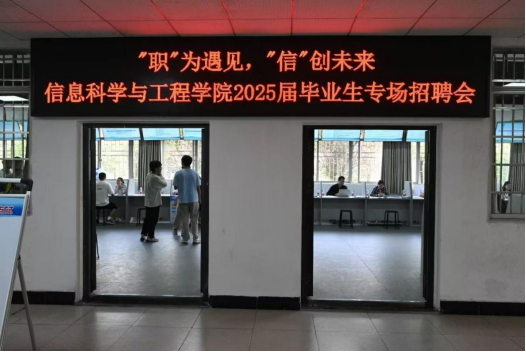 为助力毕业生就业,搭建双选平台,5月9日9:30,“职”为遇见,“信”创未来——信息学院2025届毕业生专场招聘会在南院五栋一楼招聘大厅举行,为毕业生带来就业机遇。