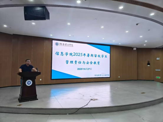 此次安全教育大会的召开,为学院暑期留校工作筑牢安全根基,助力营造安全、有序、积极的留校环境。后续学院也将持续跟进暑期留校管理,通过定期沟通、巡查等方式,动态掌握学生情况,及时响应需求、化解隐患,让安全保障与成长支持贯穿留校全程,为学生安心科研、学习保驾护航,推动暑期留校工作高质量开展。