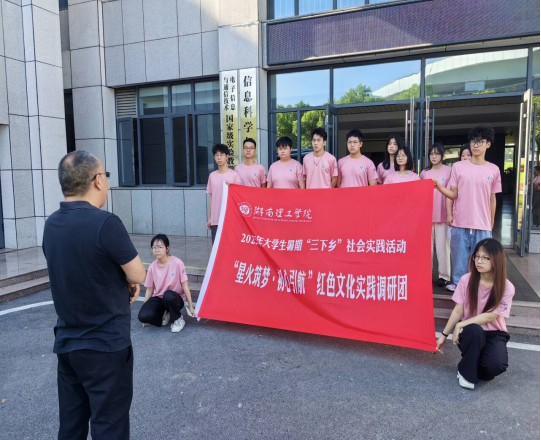 出发前,信息学院党委书记肖迎群、党委副书记付亚子特意为参与“三下乡” 的同学们送行,并送上殷切叮嘱。肖书记强调在活动过程中严格遵守团队纪律和当地规章制度,团队要严格落实安全责任制,希望大家在此次实践过程中,用心聆听红色故事,用情感受红色文化,把红色精神的火种带回校园,传递给更多同学,在实践中深化国情认知、增长才干。