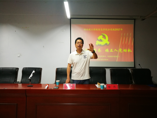 2017年5月10日晚,湖南理工学院信息学院分党校在16栋教学楼410会议室正式开班授课。本次培训第一讲由校党委委员、党委组织部部长刘创主讲,
