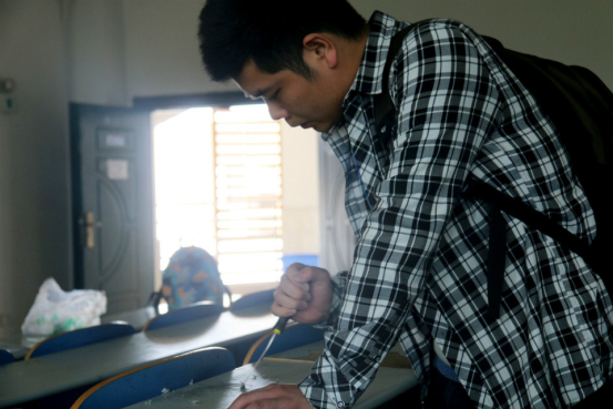 此次活动由党员带头树新风,以义务清除校园“牛皮癣”、杜绝不文明“课桌文化”为主要活动内容。我院积极响应学校号召,并于下午一点进行全面清扫义务劳动。活动过程中,我院第一、第二支部党员及入党积极分子分别对15栋四楼和五楼教室内部小广告、牛皮癣以及课桌椅上的涂鸦进行清理,在克服一系列如牛皮癣难以刮下,桌上残留有粘胶等问题后,两队支部互帮互助,将所在教室进行细致清扫,除去教室里仪器设备的表面灰尘。