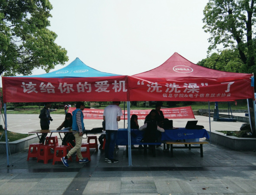 为解决我校学生关于电脑清灰、系统问题处理、office软件提供等方面问题,同时传达电脑技术对学生生活的重要性,10月15日上午10点,我院联合电子信息技术协会于南院七栋寝室楼前开展电脑义诊活动。