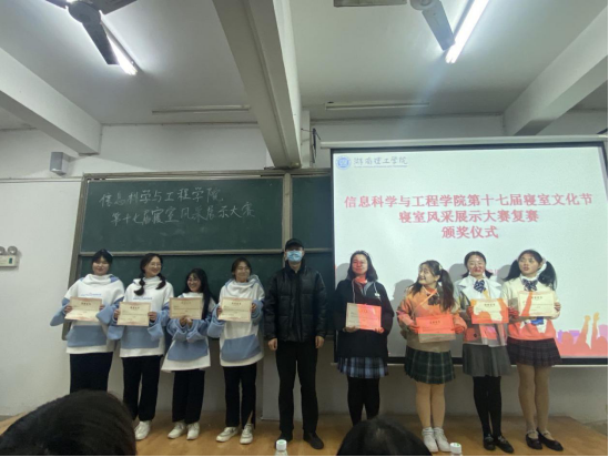 为丰富校园文化生活,营造和谐美好的宿舍环境,11月28日19:00,信息学院“第十七届寝室文化节寝室风采展示大赛”复赛在15208举行,19级辅导员王勤、20级辅导员许婕菲出席,主席团成员及21级学生代表观赛。