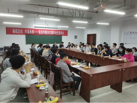 5月11日上午,信息学院在17503召开2022届毕业生座谈会,院党委书记甘向阳、院长童耀南、院党委副书记徐丹、副院长涂兵及18级各班班主任老师出席,辅导员李亦波、柳祎璇、周煊阳及各本科专业和研究生代表近50人参加。座谈会由徐丹主持。