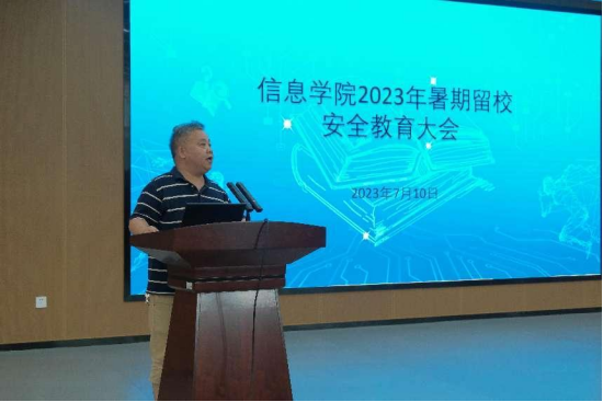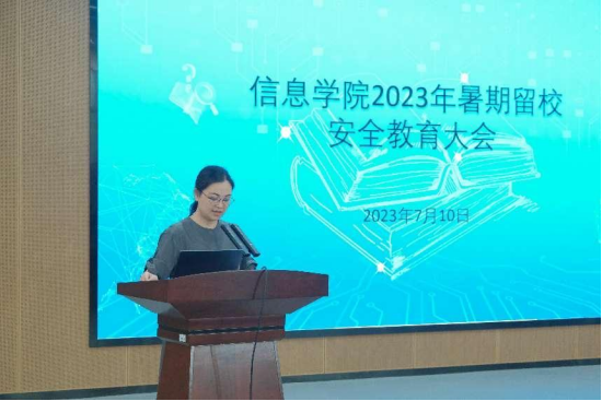 7月10日下午,为保证暑期留校工作顺利进行,保障留校学生正常学习、生活,信息学院于17118召开暑期留校安全教育大会。院党委书记甘向阳、党委副书记徐丹、辅导员李亦波、王艳芬等学工办老师参会。