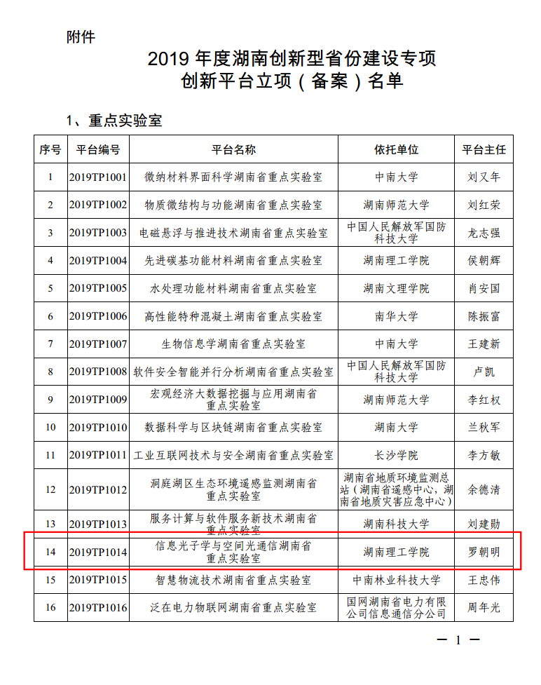 【事件:2019年获信息光子学与空间光通信湖南省重点实验室】.............................................. 2