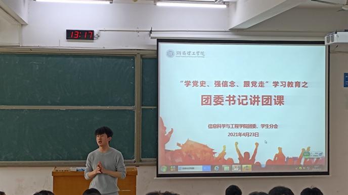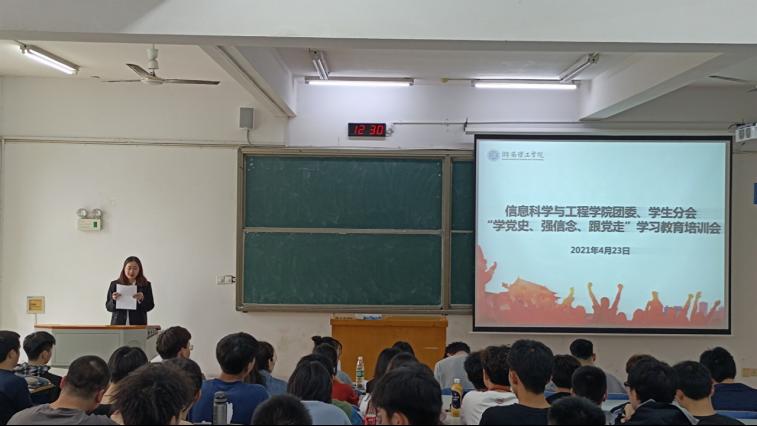 4月23日12:30,信息学院团委、学生分会“学党史、强信念、跟党走”学习教育培训会第二讲在15217顺利举行。会议由黄丽婷主持,院团委书记王勤出席,信息团学全体学生干部参加。