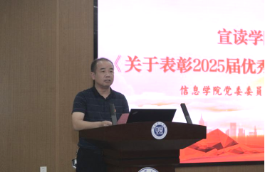 为进一步加强毕业生党员的思想政治教育,坚定理想信念,传承红色基因,5月23日下午14:30,信息学院在17118会议室举行2025届毕业生党员教育大会。学院党委书记肖迎群、院长吴健辉、副院长严权峰、副院长戴华、副院长蒋军强、副院长周峰出席会议。学院各学生党支部书记、全体学生党员以及第52期入党积极分子培训班部分学员参加,会议由院党委副书记付亚子主持。
