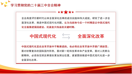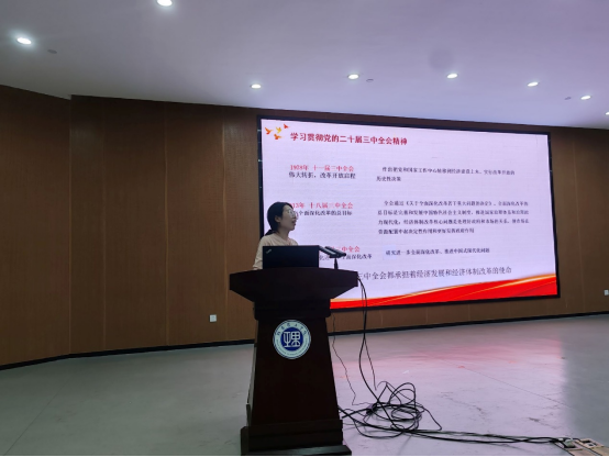 王艳芬首先回顾了党的三中全会的历史背景,系统阐述了会议的重大意义、主要内容和精神实质,特别是对新时代全面深化改革、推进中国式现代化等方面的重要论述进行了重点解读。